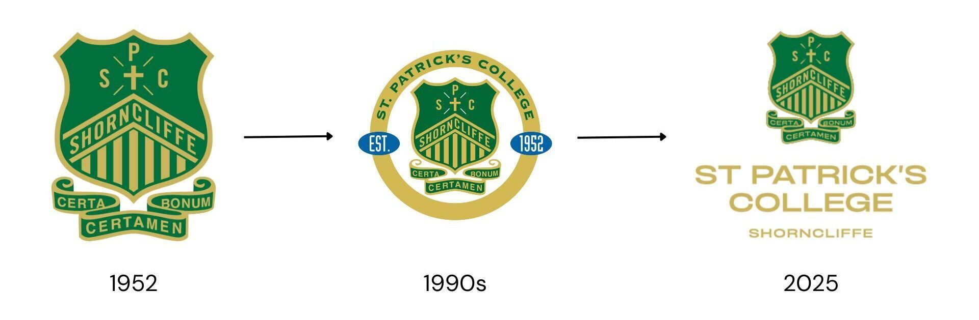 In 2002, to mark our Golden Jubilee, the crest was updated with a circular frame, deep blue ovals bearing “Est.” and “1952,” and the addition of gold detailing, each a tribute to fifty years of St Patrick’s tradition. But in 2025, as part of a bold rebranding strategy shaped by input from students, staff, alumni and parents, the decision was made to remove the circle and embrace a cleaner, more contemporary version of the crest. Two new lines have also been added to the battlements to represent our nine College Houses, each one an integral part of our community.